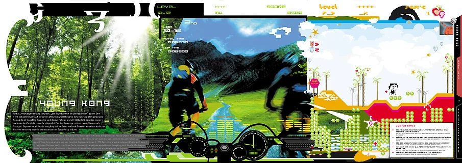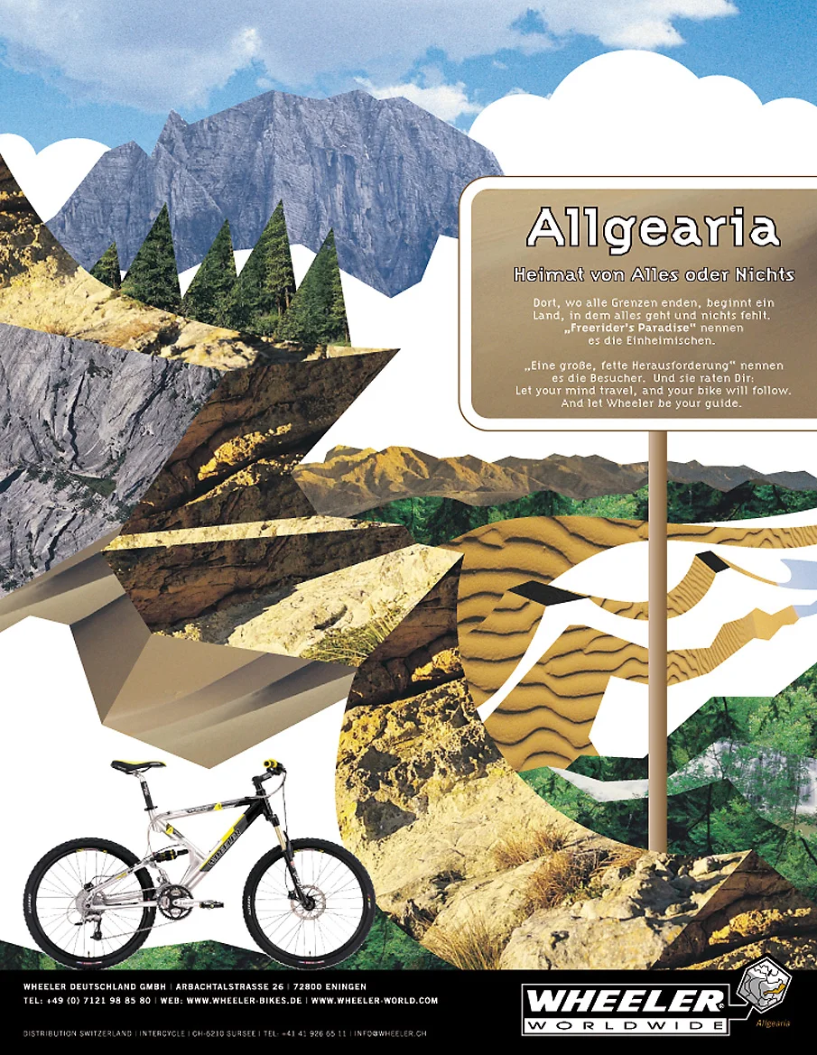 For the 2004 catalog, we created WOW–The World of Wheeler. The terrain of each of its 12 countries fits perfectly to its inhabitants riding style and preferences. You’ll meet the mud covered, downhill Extremians of Extremia; the Freeridians of Allgearia who spend all their free time at its Topographic National Park; or the children of Young Kong, the only land of WOW where there are neither taxes nor politics.